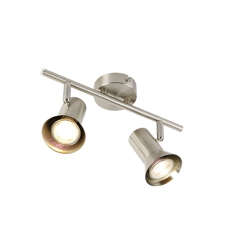 Aký pútač pozornosti v dome! Spot Karin 2 naozaj patrí do moderného interiéru. Kombinácia farby ocele a uhladeného dizajnu ho robí veľmi nadčasovým a štýlovým. Má výšku 14,5 cm, dĺžku 30 cm a šírku 8 cm. Priemer tienidla je 7,5 cm. Doska na montáž na strop má priemer 8 cm. Svietidlo má dve objímky GU10 a je dodávané bez svetelných zdrojov, preto si ich objednajte spolu s nimi (max. 35 Watt každý). Spot je tiež stmievateľný externým stmievačom; takže môžete úplne určiť svoju atmosféru. Dodajte svojmu interiéru moderný vzhľad s touto Karin 2! Spot Karin je dostupný v rôznych tvaroch a farbách.