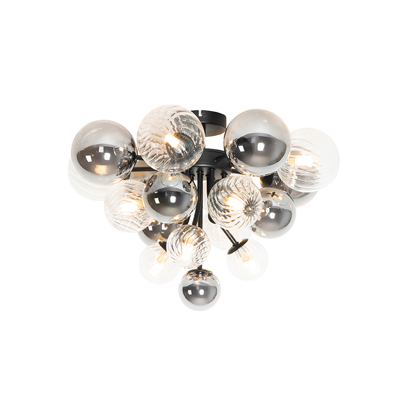 Stropné svietidlo čierne s dymovým a čírym sklom 10-svetlo – Bonnie