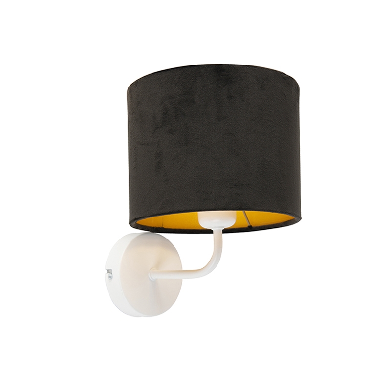 Vintage nástenné svietidlo biele s čiernym velúrovým tienidlom – matné