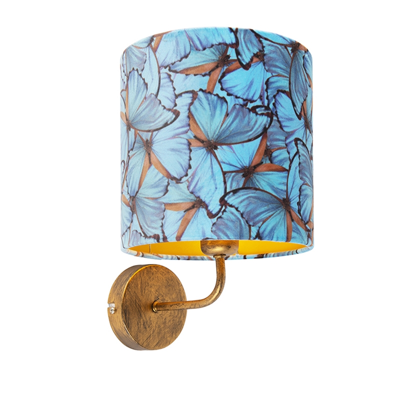 Vintage nástenné svietidlo zlaté s odtieňom zamatového motýľa – matné